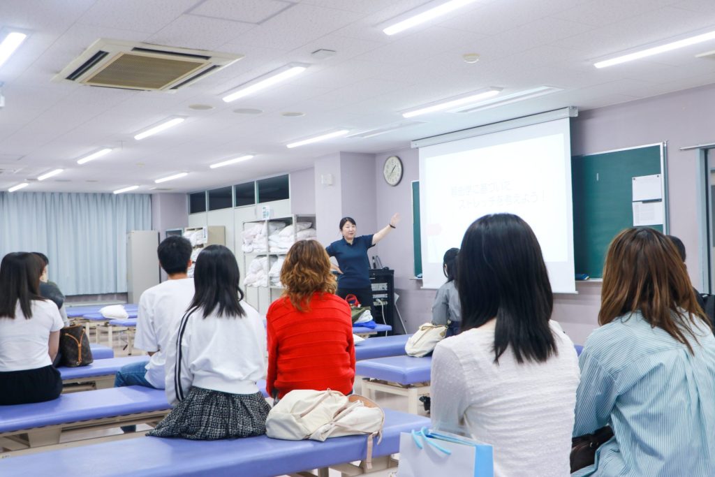 参加者の方から、「色んなストレッチがあるとわかりました。」「様々な道具があり、患者さんにあう道具を探す事が仕事内容であり社会復帰につながるとわかりました。」という感想をいただきました。」などの感想を頂きました。