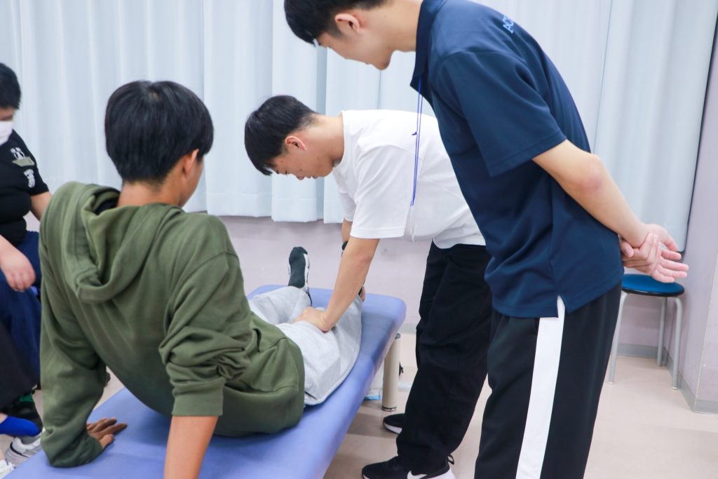 体験授業では、理学療法学専攻「解剖学に基づいたストレッチを考えよう」 作業療法学専攻「手の仕事  ~片手で調理に挑戦~」というテーマで各専攻の体験授業を体験してもらいました。
