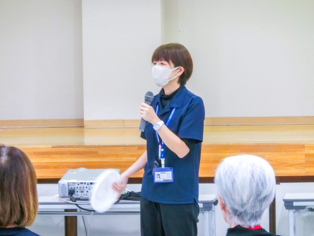 1限目は、本学の理学療法学専攻 臼井晴信 講師が「健康の秘訣は自律神経にあり」というテーマで講義を行いました。自律神経には、交感神経と副交感神経の2種類があり、交感神経は身体を動かしたときや緊張したときに活発化し、副交感神経は主にリラックスしているときに優位になります。自律神経は、交感神経と副交感神経がバランスよくはたらくことで機能することを学びました。また、「脂肪」についても取り上げ、皮下脂肪と内臓脂肪の違いや自律神経との関わりによって、病気を引き起こす原因にもなり得ること、さらに、効率よく内臓脂肪を燃やす運動を受講者の皆さんに紹介しました。