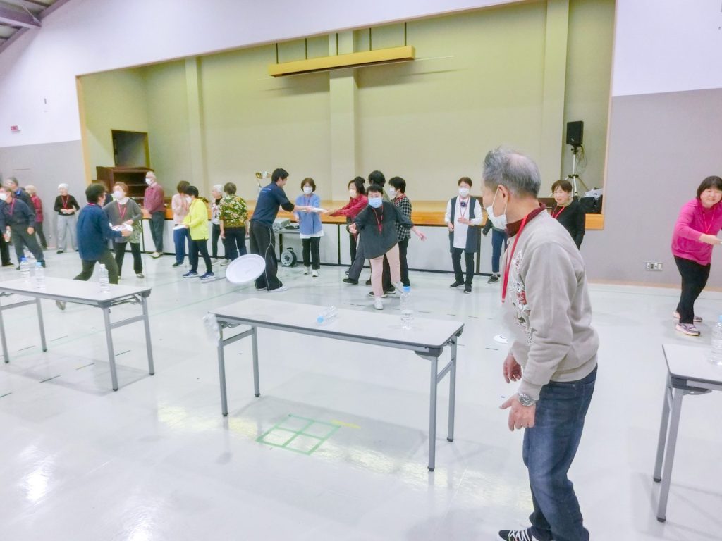 「フライングディスク」は、性別や年齢、障害に関わらず、誰でも楽しめるユニバーサルスポーツの1つとされています。 始めに、本学の教員が基本的な投げ方等を説明し、投げる練習を行った後に、正確性を競いながら輪の中めがけて投げたり、ペットボトルを倒す距離を競い合ったり、受講者の皆さんは、「フライングディスク」を楽しんでいました。