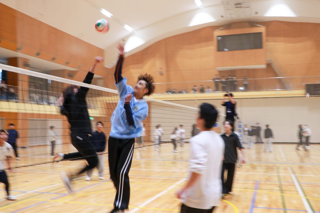 開会式では、自治会長から挨拶があり、その後各学年ごとにチームに分かれ、バレーボール、フットサル、綱引き、ドッジボール、障害物リレー、台風の目などを行いました。どの競技も接戦となり、白熱した試合が繰り広げられ、みんなが熱中する笑顔溢れるイベントとなりました。