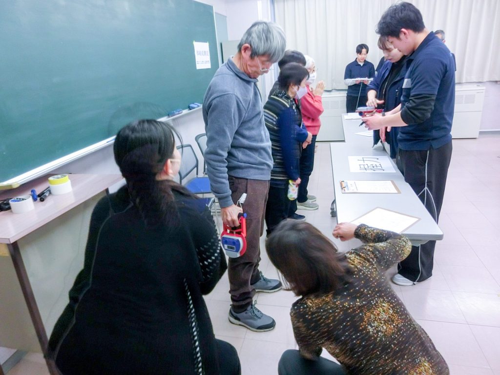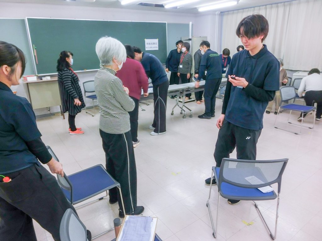 げんき大学の受講生が測定する立場になり、本学学生と協力しながら、一緒に測定を行いました。