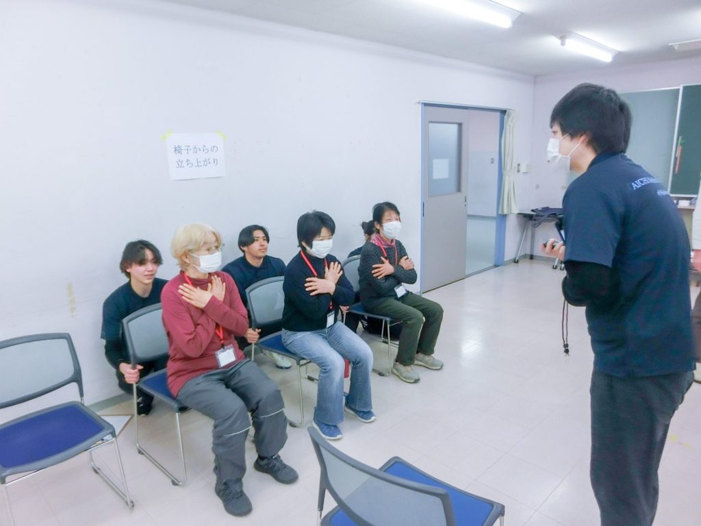 学生からは「無理しないでくださいね」「いい感じです!」といった声がかけられ、自然と笑顔になり、楽しく測定を行っている様子が印象的でした。