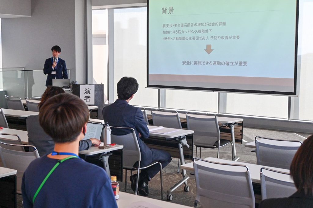 本学教員も参加し、加藤真弓准教授は高齢者の社会参加促進に関する事例報告を行い、外倉由之助教はケア・トランポリンを用いた高齢者への介入研究について発表しました。また、廣渡洋史准教授は特別講演に関連する活動について報告しました。