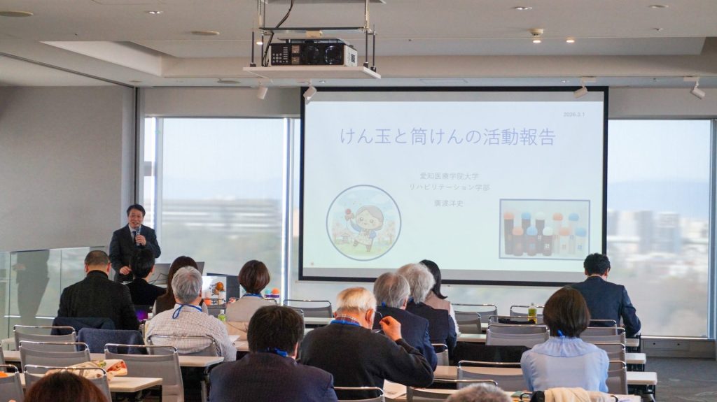 特別講演では、本学の研究にも協力いただいている清水悟先生が、「筒けん」のレクリエーションへの活用とその特性について、発表および実演を行いました。参加者全員で「筒けん」の魅力を学ぶ、充実した内容となりました。
