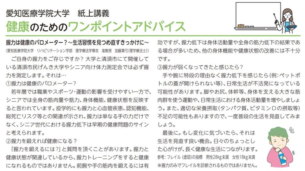 【広報清須】令和7年11月号 健康のためのワンポイントアドバイス!『握力は健康のバロメーター?~生活習慣を見つめ直すきっかけに~』