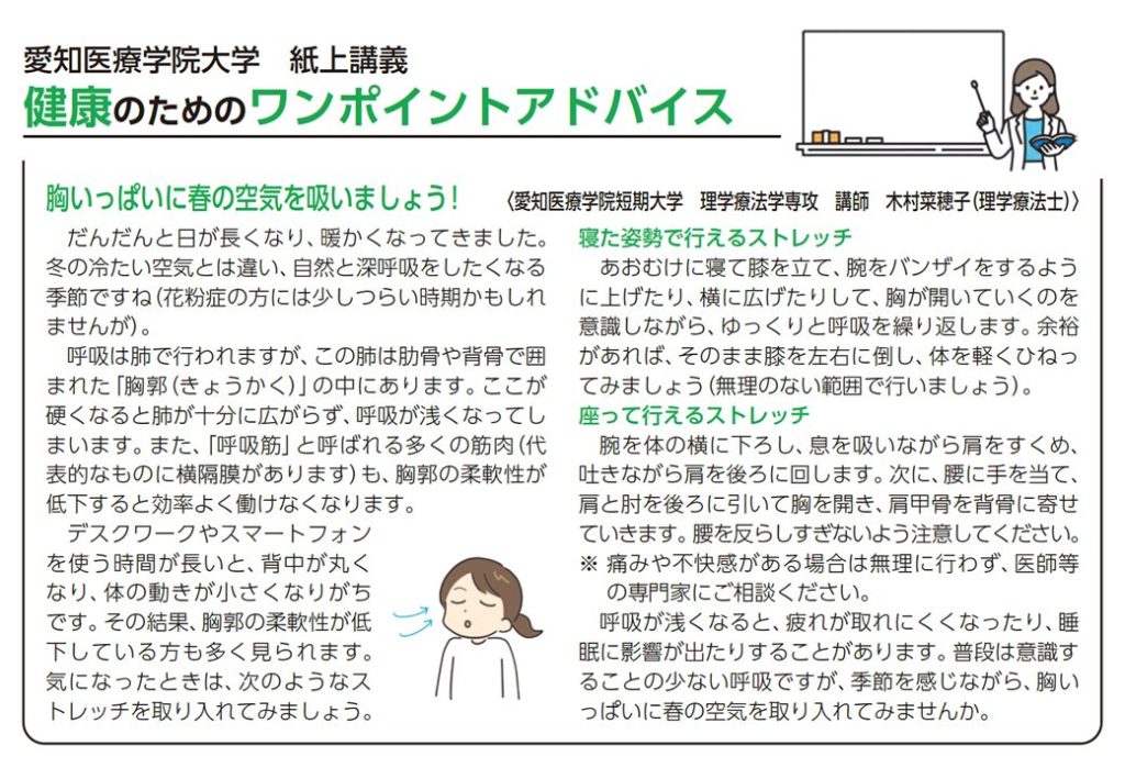 【広報清須】令和8年3月号 健康のためのワンポイントアドバイス!『胸いっぱいに春の空気を吸いましょう!』