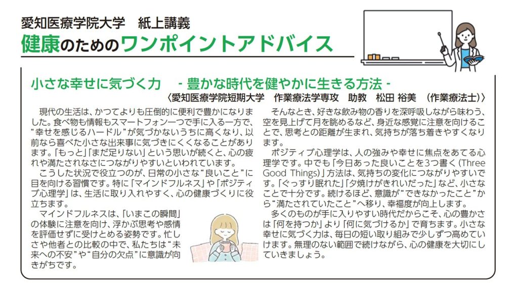 【広報清須】令和8年4月号 健康のためのワンポイントアドバイス!『小さな幸せに気づく力 ‐豊かな時代を健やかに生きる方法‐』