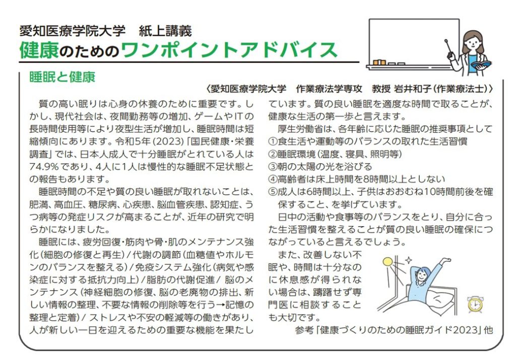 【広報清須】令和8年2月号 健康のためのワンポイントアドバイス!『睡眠と健康』